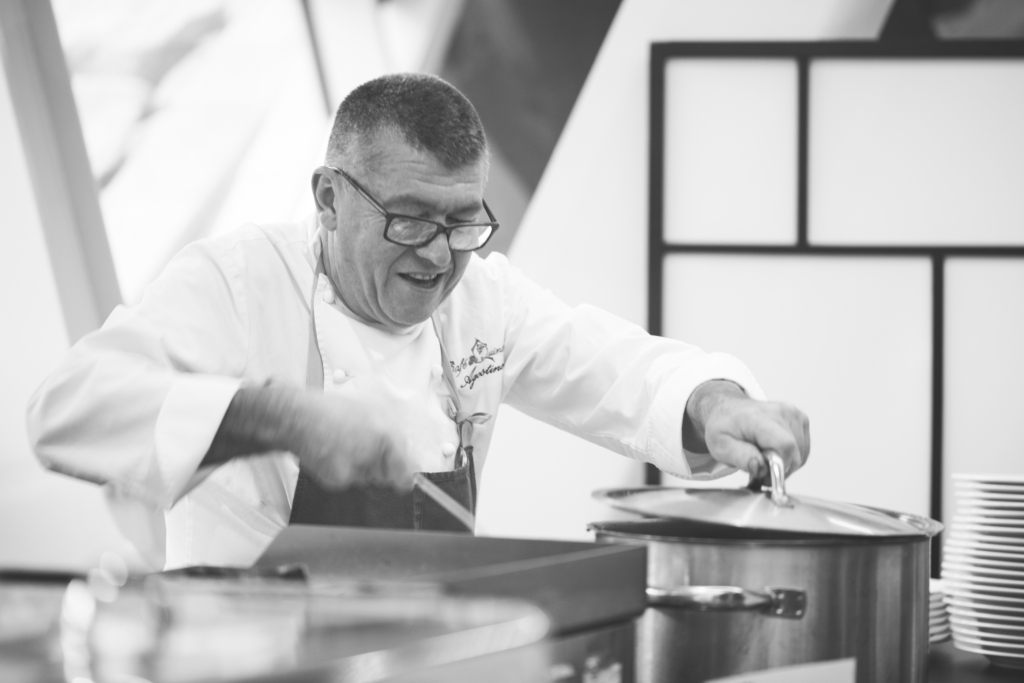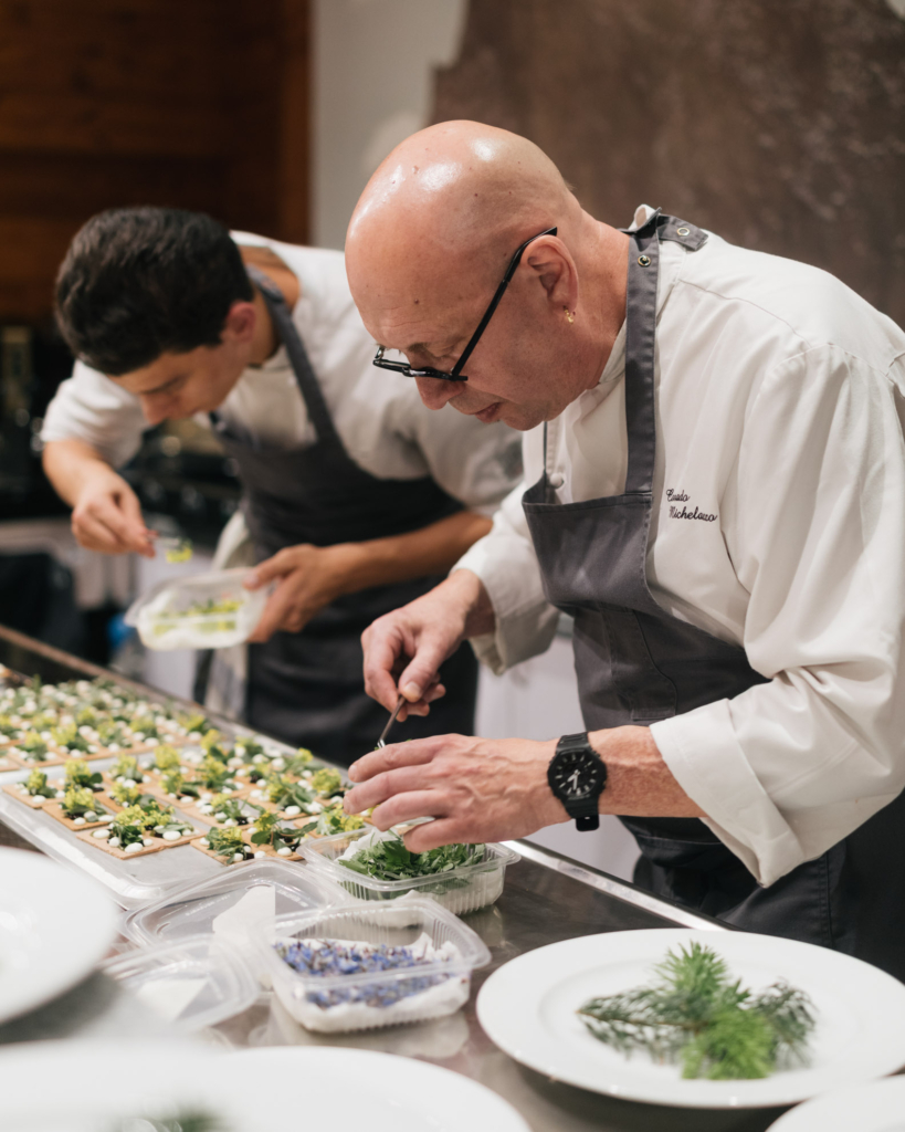 Paolo Griffa ha da poco aperto il suo ristorante, il Paolo Griffa al Caffè Nazionale ad Aosta, che ha già ricevuto una Stella Michelin. Corrado Michelazzo invece, dopo aver lavorato nei migliori ristoranti asiatici, gestisce l’Osteria Due Passi a Saint Pierre. Il 18 giugno, tra lo scintillare dei ghiacciai, c’erano anche due stelle della cucina italiana.